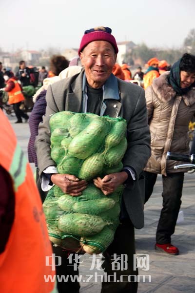 當(dāng)天上午,淮陽縣太昊陵廣場人頭攢動,1000余名貧困家庭代表早早地來到現(xiàn)場等候。9時許,“愛心蘿卜”開始免費(fèi)發(fā)放。僅一上午時間,20萬斤蘿卜就被認(rèn)領(lǐng)一空。