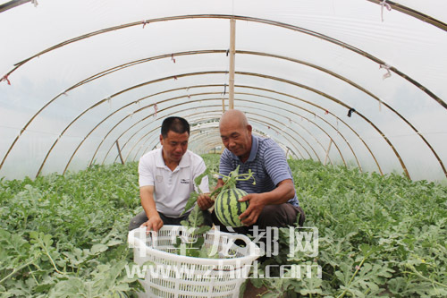 ?? 近日,項城市南頓鎮(zhèn)大棚西瓜基地開園,培育的“半截樓”8428西瓜,因果瓤脆嫩、味甜多汁走俏市場。該基地擁有大棚80多個,占地面積120多畝,畝均收入2萬多元。圖為該基地工作人員在采摘西瓜。 ?。ǚ簿颁h 攝)