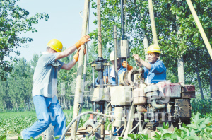 ????本報(bào)訊 (記者 張猛 文/圖) 8月3日下午,記者在西華縣田口鄉(xiāng)看到,一座座鉆機(jī)綿延數(shù)公里,工人們正頭頂烈日進(jìn)行開工建設(shè)前的鉆探勘測(cè)工作(如圖),標(biāo)志著鄭合高鐵周口西華段建設(shè)已進(jìn)入實(shí)質(zhì)性階段。