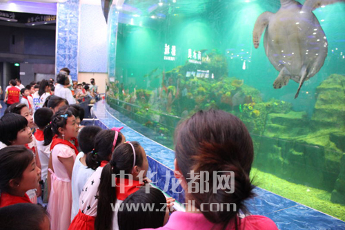 ????7月2日,在周口市義工協(xié)會開展的“繽紛夏日 快樂童年”公益活動中,商水黃寨半坡店小學的30名留守兒童與周口市區(qū)的30名兒童結(jié)成友誼對子。圖為當日孩子們一起參觀海洋館。晚報記者 張燕 攝