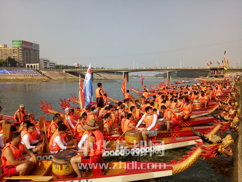 ????當日9時許,位于周口市區(qū)中州大道橋旁的中華龍舟大賽基地鑼鼓喧天,人潮涌動,不少市民攜家?guī)Э谇皝碛^戰(zhàn)。河中,20多條龍舟整齊地排列在水面上(如圖),等待“點睛”時刻的到來。一點龍眼,風調(diào)雨順、國泰民安……點睛人分別為龍舟“點睛”后,第三屆中華龍舟大賽正式拉開帷幕。