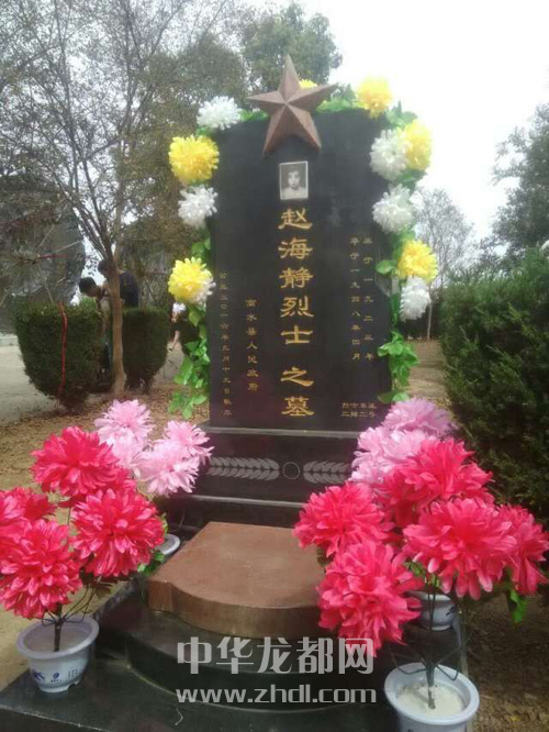 ????2015年10月,周口市鹽業(yè)局干部康國富和胡東周受市委組織部指派,到商水縣鄧城鎮(zhèn)周莊村駐村。2016年3月,康國富和胡東周在村里召開黨員大會時,偶然了解到趙海靜的事跡,深受感動。他們經(jīng)過調(diào)查、走訪,確認(rèn)了趙海靜烈士的事跡。于是,他們先后向周口市委組織部、商水縣委組織部有關(guān)領(lǐng)導(dǎo)作了匯報,懇請有關(guān)部門為趙海靜修墓立碑。他們的請求得到了市縣兩級組織部門的大力支持,鄧城鎮(zhèn)民政所和商水縣民政局聞訊后也積極配合。