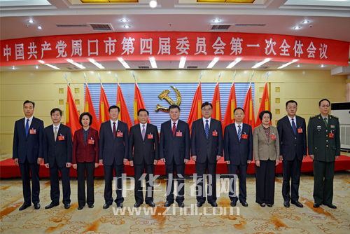 ????下圖:新當(dāng)選的中共周口市第四屆委員會(huì)常務(wù)委員會(huì)委員徐光(左六)、劉繼標(biāo)(右五)、李德才(左五)、劉保倉(右四)、王富興(左四)、方婷(右三)、牛越麗(左三)、李云(右二)、擺向陽(左二)、元相學(xué)(右一)、朱良才(左一)。記者 王映 攝