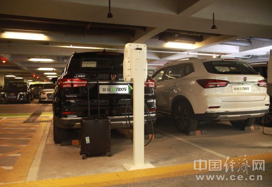 在上海虹橋機(jī)場的停車樓,由兩排充電樁構(gòu)成的專屬停車區(qū)甚是醒目,專屬停車位上的榮威eRX5車頭標(biāo)志閃爍的呼吸燈表示車輛正處于充電狀態(tài)。