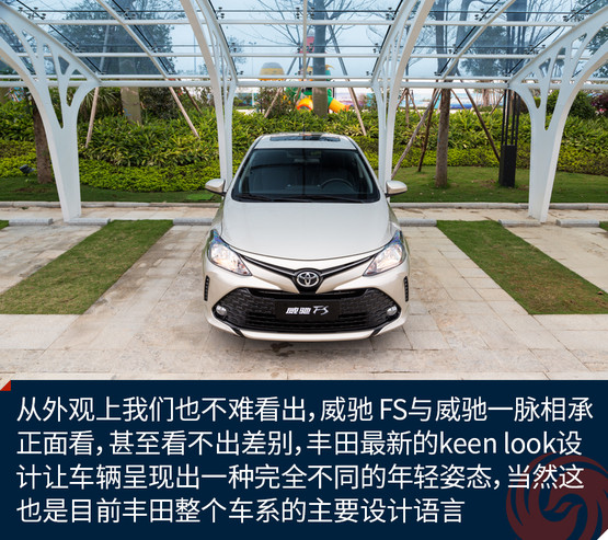 從外觀上我們也不難看出,威馳 FS與威馳一脈相承,正面看,甚至看不出兩車的差別,豐田最新的keen look設(shè)計讓車輛呈現(xiàn)出一種完全不同的年輕姿態(tài),當(dāng)然這也是目前豐田整個車系的主要設(shè)計語言,就是要讓車輛更顯年輕運動。大嘴的設(shè)計讓威馳 FS頗顯得有些頑皮,而且在這張大嘴中還隱藏了許多四邊型的裝飾塊,在大嘴兩側(cè)是兩道裝飾性的“八字胡”,除此之外是一雙大大的眼睛,這一副調(diào)皮可愛的模樣,相信不少年輕人都會喜歡。