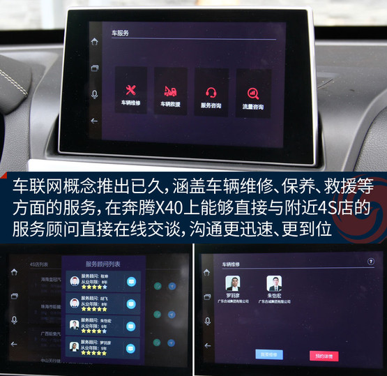 沒錯,你可能見過帶語音控制的功能,但還沒見過識別這么靠譜的;你可能見過能陪聊的,但還沒見過這么貧的;你可能見過支持裝APP的,但還沒見過集成社交平臺,能直接找車友、交朋友,甚至在地圖界面發(fā)彈幕的;你可能見過帶保養(yǎng)等服務(wù)的,但還沒見過能直接跟4S店的服務(wù)代表在線交談的......也許功能上還有需要完善的細節(jié),但不可否認,奔騰X40在車聯(lián)網(wǎng)層面開辟了一個新的方向。