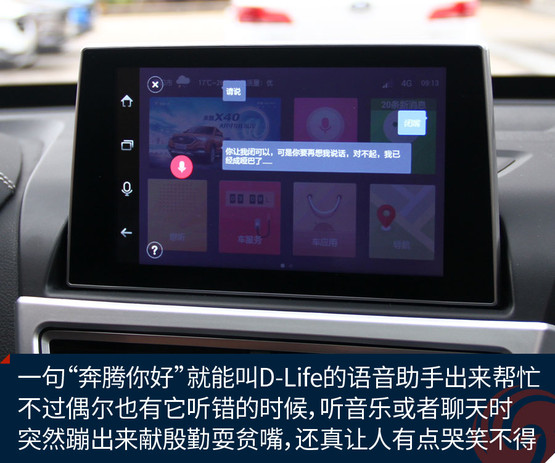 不過跟奔騰X40接觸兩天之后,會發(fā)現(xiàn)它大可不必在對手林立的市場中血拼顏值,靠實力不俗的獨門絕技一樣能夠輕松獲得一席之地。既然面向年輕用戶,豐富的車載娛樂系統(tǒng)很關(guān)鍵。大屏幕、手機互聯(lián)等等似乎已經(jīng)是這類車的標配。奔騰X40更進一步,所搭載的D-Life系統(tǒng)讓我們看到了它引領(lǐng)潮流的勁頭。
