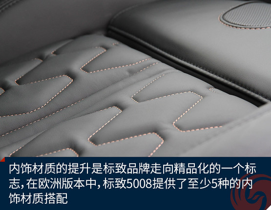 內(nèi)飾材質(zhì)的提升是標(biāo)致品牌走向精品化的一個(gè)標(biāo)志,在歐洲版本中,標(biāo)致5008提供了至少5種的內(nèi)飾材質(zhì)搭配,比如我們?cè)囻{的這款GT-Line版本,就采用布與皮相結(jié)合的材質(zhì)選擇,座椅則采用了標(biāo)致最新的經(jīng)典紋路,既美觀又保證乘坐舒適性。