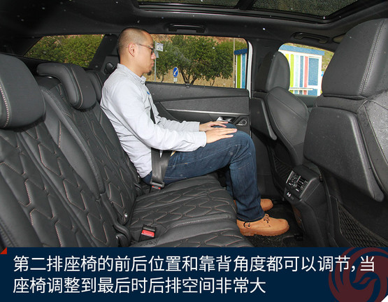 第二排座椅的前后位置和靠背角度都可以調(diào)節(jié),當(dāng)座椅調(diào)整到最后時(shí)后排空間非常大,同時(shí)標(biāo)致5008還為第二排乘客提供了獨(dú)立空調(diào)、小桌板和車頂上的全景天窗,所以當(dāng)?shù)谌挪恍枰藭r(shí),標(biāo)致5008的第二排是一個(gè)乘客休息娛樂的好地方。