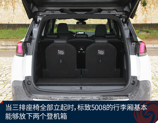 標(biāo)致5008提供了三排座椅還有另外一個(gè)顯著的好處是,可以豐富行李廂的使用方式。通過實(shí)際體驗(yàn)可以發(fā)現(xiàn),當(dāng)三排座椅全部立起時(shí),標(biāo)致5008的行李廂基本能夠放下兩個(gè)登機(jī)箱,但如果第三排不需要坐人時(shí),可以將第三排完全放平(甚至不會(huì)發(fā)現(xiàn)有第三排的存在),此時(shí)行李廂放兩個(gè)大號(hào)托運(yùn)箱應(yīng)該也是沒有問題的。