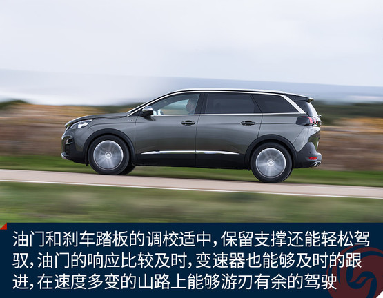 油門和剎車踏板的調(diào)校也如是,踏板腳感適中,保留支撐還能輕松駕馭,并不像多數(shù)歐系車那樣沉重。油門的響應(yīng)比較及時(shí),變速器也能夠及時(shí)的跟進(jìn),在速度多變的山路上能夠游刃有余的駕駛。唯一的問題是低功率的1.6T在動(dòng)力上沒有突出的表現(xiàn),尤其在上坡時(shí),加速會(huì)稍感吃力,但是想到這事一款家用SUV,這也就不是問題了。而且標(biāo)致5008在國(guó)內(nèi)的主力車型將會(huì)是1.8T版本,動(dòng)力還會(huì)再上一個(gè)臺(tái)階。