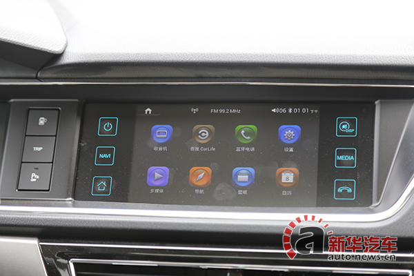 7英寸多媒體顯示屏采用觸控式操作,實際測試靈敏度較高,集成導航、藍牙等功能。后視鏡加熱按鍵被設置在了下方控制區(qū)。