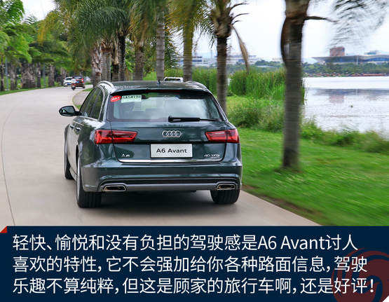 ????????作為原裝進(jìn)口車,奧迪A6 Avant的底盤懸掛設(shè)定不像國產(chǎn)奧迪A6L那種偏向關(guān)照后排的VIP,再加上標(biāo)配運(yùn)動(dòng)型懸掛縮減了懸掛行程,A6 Avant旅行車開起來明顯比A6L來的犀利和動(dòng)感,我并不是說它像RS 6 Avant那樣有種讓人上癮而無法自拔的“毒力”,但作為一臺(tái)有著濃郁個(gè)人主義色彩又需要兼顧全家使用的車型,奧迪A6 Avant是那種該穩(wěn)就穩(wěn),要快也能快的理想設(shè)定。