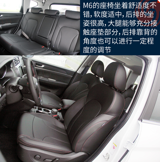????????M6的空間表現(xiàn)在同級(jí)別車(chē)型當(dāng)中屬于優(yōu)勢(shì)地位,主要原因就是內(nèi)部空間和H6基本沒(méi)區(qū)別。特別得說(shuō)新車(chē)的座椅,很柔軟、舒服,包裹性也不錯(cuò)。不過(guò)坐姿真的有點(diǎn)高,前排座椅調(diào)到最低后還是能看到整個(gè)機(jī)艙蓋,這樣倒是為了安全性;后排的座椅還要更高一些,有點(diǎn)類似劇院式的設(shè)計(jì),給后排乘客減少了壓抑感。