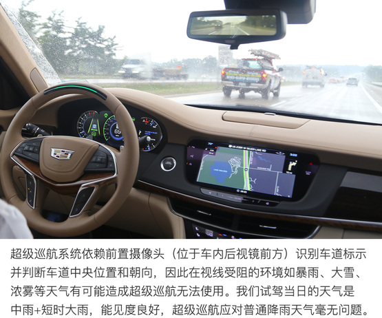 ????????超級巡航系統(tǒng)通過GPS定位的高精度地圖和車載攝像機(jī)定位和識別行駛路徑并判斷車輛所在的車道,所以遇到暴雨、大霧或沙塵等影響攝像頭工作的天氣,或者駛?cè)胨淼雷钄郍PS信號的時候,超級巡航系統(tǒng)的使用可能受到影響。雖然這些突發(fā)狀況可能會導(dǎo)致超級巡航功能在行駛中突然推出,但不必?fù)?dān)心安全問題,系統(tǒng)會及時提示駕駛者接管汽車,其邏輯與駕駛者“失能”的提醒流程幾乎相同,駕駛員有從容的時間反應(yīng)并接管汽車。