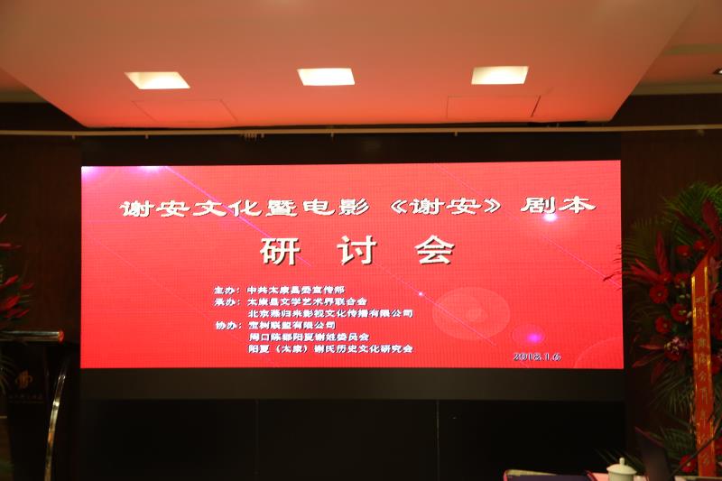 (周口報業(yè)全媒體記者馬治衛(wèi) 通訊員高雷)2018年1月6日上午,謝安文化暨電影《謝安》劇本研討會在北京河南大廈四樓多媒體會議室召開,來自國內(nèi)外近50名專家學(xué)者、影視工作者、海內(nèi)外謝氏后裔,以及部分在京的太康籍人士, 參加了此次研討會。此次研討會是由謝安故里中共太康縣委宣傳部主辦,太康縣文學(xué)藝術(shù)界聯(lián)合會和北京燕歸來影視文化傳播有限公司聯(lián)合承辦。