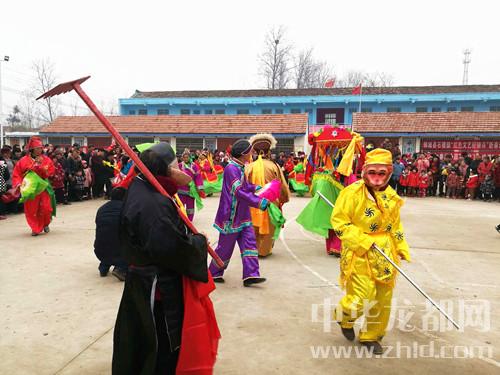 “前幾年農(nóng)閑真是把人閑得心慌,每天都是吃飽等餓、仰著臉上曬日頭?,F(xiàn)在黨的政策好,幫俺提起了精氣神兒,俺村20多個老頭老太太組成一支竹馬旱船腰鼓花棍廣場舞隊,年輕的時候會一點,現(xiàn)在見演出就來學一點,上一次李全林縣長晚上住俺這里幫扶,在俺這里看演出,說俺也成專業(yè)隊了?!边@個群眾隊的隊長是78歲的羅有德、扮相是孫悟空,旱船里的“花媳婦”是80歲的郭蘭英。連續(xù)15分鐘的蹦跳表演之后摘掉面具接受記者采訪時,群眾們都不敢相信他們這么大年齡還跳得這么起勁兒?!澳銈兊难莩鲫犆痔L了”記者說,“哈哈哈哈,俺老頭老太太都是‘三板斧’,也不會起名字,會的這幾招兒都寫到名字上了?!绷_有德、郭蘭英大笑著回答。