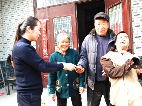 中華龍都網(wǎng)訊(周口報(bào)業(yè)全媒體記者 李瑞才 通訊員 胡洪濤 文圖)3月24日,鹿邑縣志愿者田小曼、羅曉光、韋坤三人一行到該縣鳴鹿辦事麻窩村慰問(wèn)殘疾人張紅印和他的“愛(ài)心媽媽”,送去慰問(wèn)金1000元和生活用品。