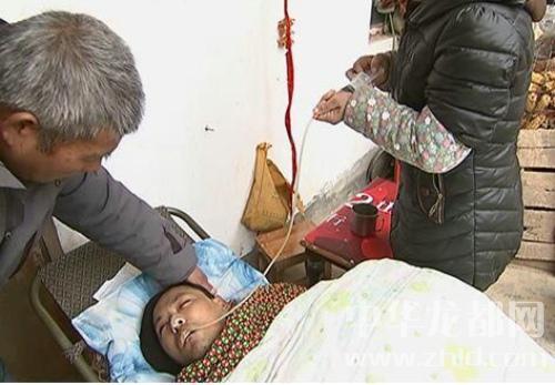 病人叫張肖,家住太康縣遜母口鎮(zhèn)劉橋行政村邵莊村,此人人脈很好、平時精明能干,曾在洛陽等地承包工地搞建筑。2015年3月的一天夜里10時許,他和朋友晚飯后騎車回住地途中,不慎摔倒在地。當(dāng)時,暈暈乎乎感覺沒事,回家就休息了,第二天已不省人事,在鄭大一附院做了開顱手術(shù),光淤血抽出來100多毫升,頭腫的眼都看不見。張肖的父親張德印回憶說張肖在鄭治療花費(fèi)60多萬,由于無力支付高額醫(yī)療費(fèi)用,轉(zhuǎn)診到太康縣醫(yī)院又花十多萬。令人惋惜的是,張肖錯過了最佳治療時間,從此成了植物人。