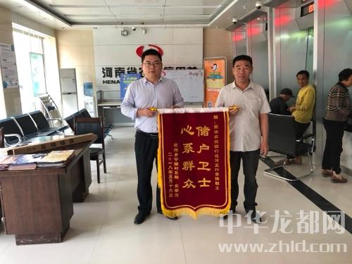 中華龍都網(wǎng)訊(周口報(bào)業(yè)全媒體記者 付永奇 通訊員 高少輝)5月24日上午,商水縣化河鄉(xiāng)村民史學(xué)習(xí)和村支書一同來到商水農(nóng)商銀行化河支行,為該支行送來一面“儲戶衛(wèi)士 心系群眾”的榮譽(yù)錦旗,感謝該支行幫其找到丟失的現(xiàn)金。