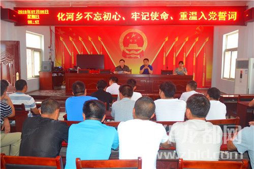 中華龍都網(wǎng)訊(周口報(bào)業(yè)全媒體記者 付永奇 通訊員 張長(zhǎng)河)7月8日上午,化河鄉(xiāng)黨委在鄉(xiāng)政府會(huì)議室舉行“不忘初心、牢記使命”重溫入黨誓詞儀式。今年轉(zhuǎn)為正式黨員的高四峰、夏秋雨等19名新黨員和李俊領(lǐng)、史學(xué)濤等22名預(yù)備黨員參加了此次儀式。儀式由鄉(xiāng)黨委書記高永強(qiáng)主持,黨委副書記、政府鄉(xiāng)長(zhǎng)賈洪濤、組織委員許艷等出席。