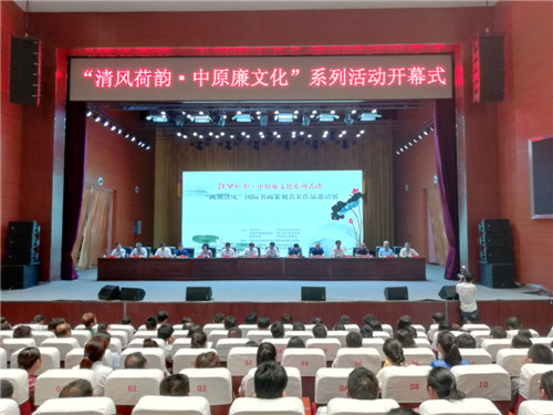 7月24日上午,“清風(fēng)荷韻·中原廉文化”書畫篆刻名家作品展暨國家治理名家大講堂等系列活動在淮陽縣舉行。省紀委監(jiān)察委宣傳部長袁勇、省社科院黨委副書記周立、河南日報報業(yè)集團大河網(wǎng)總編輯孟磊、中央黨?!秾W(xué)習(xí)時報》副總編輯楊英杰及淮陽縣委書記馬明超、縣長王毅等出席?;顒佑墒形N?、紀委書記、監(jiān)察委主任劉孟連主持。