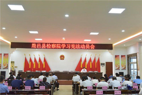 為了弘揚憲法精神,切實履行憲法定位,達到學(xué)習(xí)憲法、理解憲法、維護憲法、運用憲法的目的,7月30日,鹿邑縣檢察院召開學(xué)習(xí)憲法動員會??h紀委監(jiān)委駐檢察院紀檢監(jiān)察組長、黨組成員王首功對憲法的序言和憲法修改的背景進行了細致的解讀。院黨組書記、檢察長魯建軍在主席臺下認真聽、認真記,作為一名普通干警一起認真聆聽了憲法解讀。