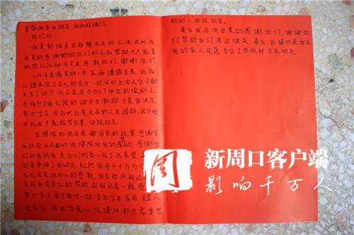 “我一定會銘記黨和政府的關(guān)懷,永遠(yuǎn)忘不了縣婦幼保健院的幫助,時刻懷著一顆感恩的心,努力學(xué)習(xí),回報(bào)社會,把這份愛心傳遞下去……”王浩激動地說。為了表達(dá)感謝,王浩將一封感謝信遞交給了亢國良手中。