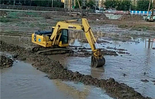當日16時許,記者在順和家園施工現(xiàn)場看到,由于近幾天連降暴雨,基坑內(nèi)積水嚴重,目前,施工方投入井點降水水泵70臺,基坑內(nèi)抽水污水泵20臺正在進行基坑抽水,為及時復工創(chuàng)造條件。