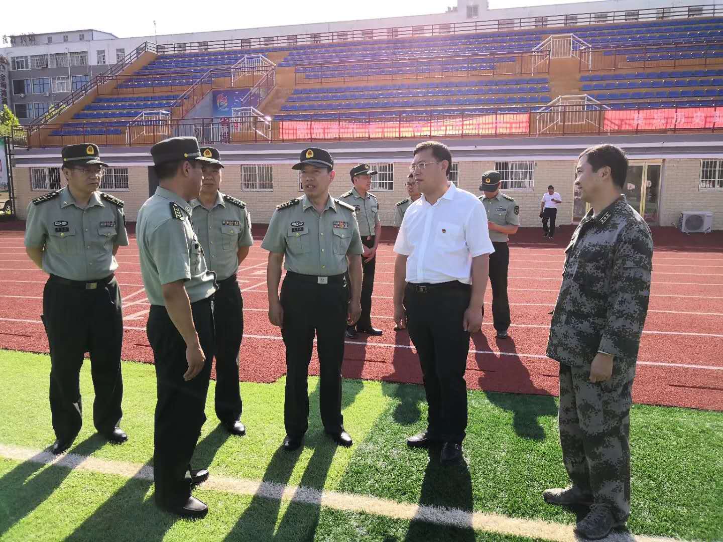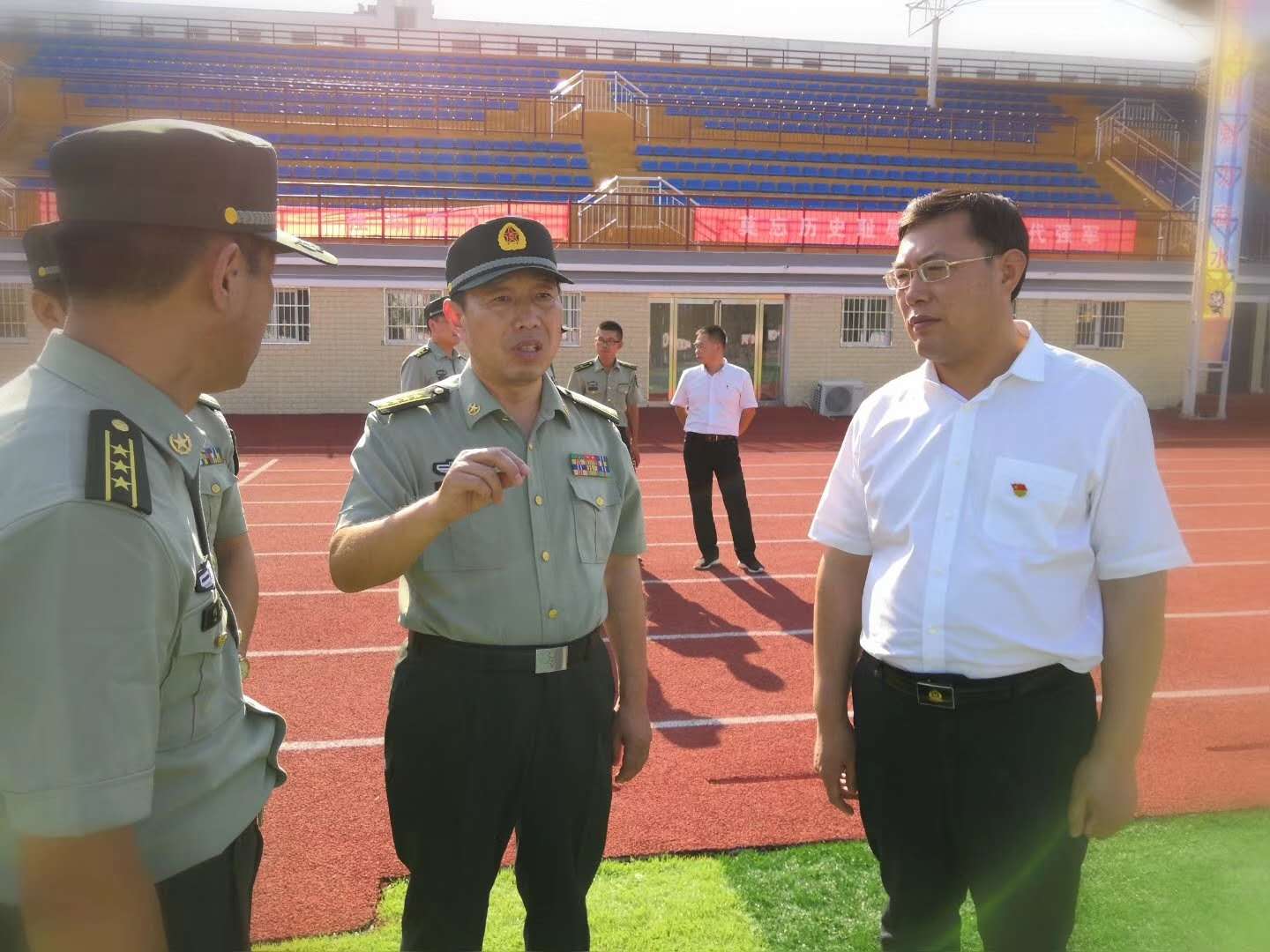 在縣委書記馬衛(wèi)東,縣委常委、縣人武部政委李強(qiáng),縣人武部部長(zhǎng)何永華等人的陪同下,王善沖一行實(shí)地察看了新兵役前訓(xùn)練情況,與新兵進(jìn)行親切交談,詳細(xì)詢問(wèn)了解訓(xùn)練生活情況。