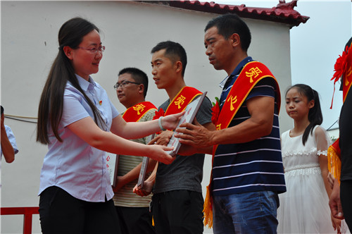 會上,與會領(lǐng)導(dǎo)依次為評選出的“孝善敬老先進(jìn)個人”“孝賢之家”“優(yōu)秀黨員”“脫貧光榮戶”“十星級文明戶”及“愛心企業(yè)”等六類先進(jìn)個人和家庭頒獎。受表彰的孝賢之家的子女們雙膝跪地向老人行中國傳統(tǒng)跪拜大禮,感謝父母養(yǎng)育之恩,把現(xiàn)場氣氛推向高潮,讓觀眾們?yōu)橹畡忧椤?/p>