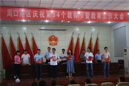 9月8日,周口港區(qū)召開慶祝第34個教師節(jié)暨教育工作大會,表彰港區(qū)優(yōu)秀校長、優(yōu)秀教師、先進工作者及先進單位,總結部署港區(qū)教育工作,歡慶教師節(jié)。周口港區(qū)黨委委員張東立出席大會并講話。