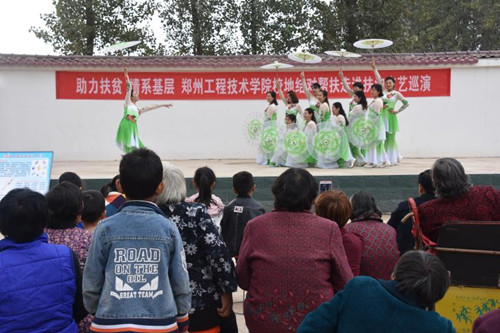 歡快的歌曲唱起來,動人的舞蹈跳起來,熱情的掌聲響起來!10月20至21日,鄭州工程技術(shù)學(xué)院音樂舞蹈學(xué)院黨總支書記魏瑞娟帶著學(xué)院師生走進扶溝鄉(xiāng)村,把精彩的文藝演出和普法宣傳送到群眾身邊,為脫貧攻堅加油助力。