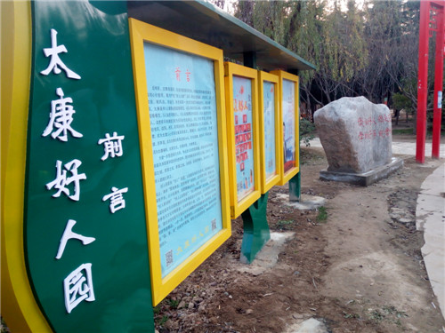 為把好人精神鐫刻在太康發(fā)展和進(jìn)步的進(jìn)程中,把太康建設(shè)成為好人之城、文明之城、和諧之城、美麗之城、幸福之城,從2018年9月起,太康“好人園”經(jīng)過(guò)緊鑼密鼓地籌建,如今開(kāi)園迎賓。好人園緊扣“好人”主題,以道德風(fēng)尚建設(shè)為主線,在休閑公園的基礎(chǔ)上,秉承“因地制宜、因勢(shì)利導(dǎo)”的原則,堅(jiān)持寓教于園、寓教于景、寓教于樂(lè),以小處著手、局部微調(diào)的手法,通過(guò)“好人步道”“好人亭”“好人樹(shù)”“好人大舞臺(tái)”“好人精神長(zhǎng)廊”五大版塊,將道德風(fēng)尚高地建設(shè)與公園的整體風(fēng)格和功能定位完美結(jié)合。好人園兼顧了公園本身特色與文化傳播需要,利用林蔭小道,以石、亭、牌等基礎(chǔ)設(shè)施為載體,圖文并茂地展示太康近年來(lái)獲得國(guó)家和省級(jí)表彰的道德典型、身邊榜樣的先進(jìn)事跡,一步一景,隨景賦形。市民在游園過(guò)程中,潛移默化地接受“真、善、美”的教育和熏陶,激發(fā)人們見(jiàn)賢思齊,榜樣的引領(lǐng)作用不斷放大。
