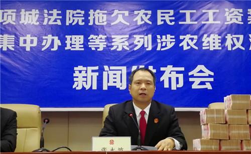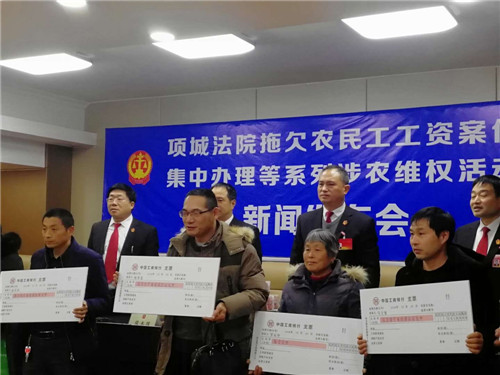 “感謝項(xiàng)城法院的領(lǐng)導(dǎo),他們一心為民,克服種種困難,幫助我們要回了血汗錢。”12月24日,項(xiàng)城法院拖欠農(nóng)民工工資案件集中辦理等系列涉農(nóng)維權(quán)活動新聞發(fā)布會在該院召開,16名涉農(nóng)維權(quán)案件當(dāng)事人從項(xiàng)城法院黨組成員、院長張永波的手中接過索要許久的血汗錢,喜極而泣。