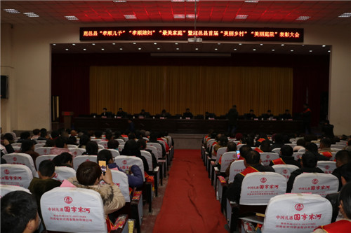 12月29日,鹿邑縣“孝順兒子”“孝順媳婦”“最美家庭”暨首屆“美麗鄉(xiāng)村”“最美庭院”表彰大會(huì)在縣委學(xué)校一樓報(bào)告廳召開(kāi)??h領(lǐng)導(dǎo)付吉廣、武衛(wèi)東、劉銀、宋克言等出席會(huì)議??h委宣傳部、文明辦、縣總工會(huì)、縣婦聯(lián)、縣委農(nóng)辦、縣扶貧辦等部門負(fù)責(zé)人與來(lái)自全縣各鄉(xiāng)鎮(zhèn)辦事處的300多名干部群眾代表參加會(huì)議。