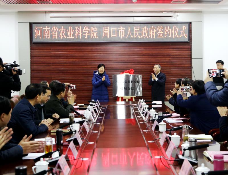 1月9日,河南省農(nóng)業(yè)科學(xué)院與周口市人民政府簽訂全面戰(zhàn)略合作協(xié)議暨河南省農(nóng)業(yè)科學(xué)院鄲城分院揭牌儀式在鄲城舉行,中國(guó)工程院院士、省農(nóng)科院院長(zhǎng)張新友,省農(nóng)科院副院長(zhǎng)衛(wèi)文星,副市長(zhǎng)張廣東,以及鄲城縣委書(shū)記羅文閣、縣長(zhǎng)李全林等相關(guān)負(fù)責(zé)同志參加儀式。
