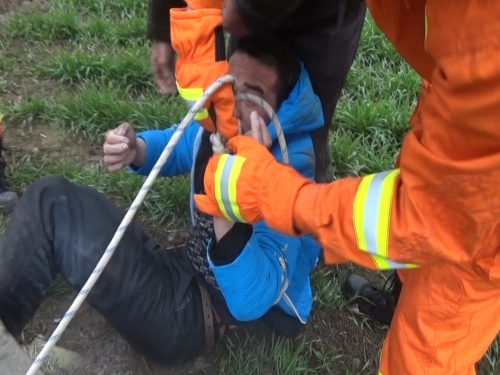 “氣溫很低,而且男子已經(jīng)在井下水里泡了一夜,好在他的意識(shí)還比較清醒?!毕乐嘘?duì)長李輝說,經(jīng)過交談,他們采取下繩套的辦法,讓男子自行把手腕伸進(jìn)繩套內(nèi),然后大家齊心協(xié)力把他拉了上來。