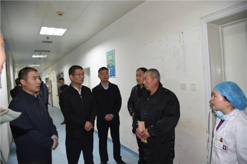 3月4日,扶溝縣委書記盧偉,縣委副書記、政法委書記張峰,縣委常委、縣委辦公室主任朱良杰等一行,前往縣人民醫(yī)院親切看望慰問在脫貧幫扶工作中受傷的駐村工作隊長朱天中。
