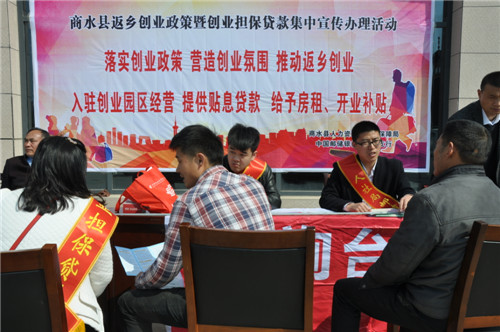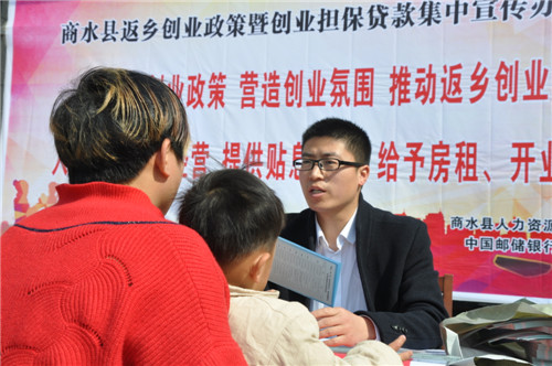 3月18日上午,商水縣人社局和縣郵儲(chǔ)銀行聯(lián)合在省級(jí)農(nóng)民工返鄉(xiāng)創(chuàng)業(yè)示范園區(qū)周口汽配城開展創(chuàng)業(yè)補(bǔ)貼、創(chuàng)業(yè)擔(dān)保貸款優(yōu)惠政策宣傳。