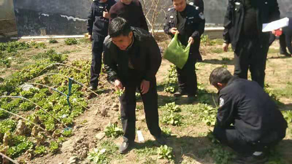 3月15日,大王莊派出所民警在簸箕劉村排查時(shí),發(fā)現(xiàn)劉某家外菜地種植罌粟原植物6000株,經(jīng)訊問,劉某對種植罌粟行為供認(rèn)不諱;3月16日上午,民警在大王莊鄉(xiāng)王金莊村王某家菜地發(fā)現(xiàn)罌粟苗2980株,當(dāng)民警向其講明種植罌粟的危害后,王某對種植罌粟苗治腰疼病的行為悔恨不已;當(dāng)日下午,民警在大王莊鄉(xiāng)方莊村走訪中,發(fā)現(xiàn)在一片大蒜地里密密麻麻種植的罌粟,經(jīng)清點(diǎn)為2001株,還有部分被黑色的障礙物遮擋住,經(jīng)調(diào)查系村民方某種植。