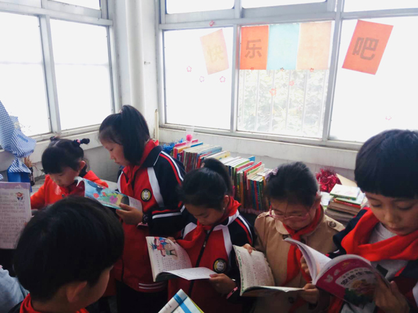 為迎接世界讀書日的到來,引導(dǎo)學(xué)生“在閱讀中成長,在成長中閱讀”,養(yǎng)成終身閱讀的好習(xí)慣,周口六一路小學(xué)在全校范圍內(nèi)創(chuàng)建班級圖書角,每個班級圖書角的藏書超過百冊。圖為孩子們在圖書角認真閱讀。