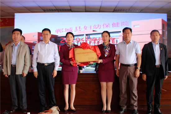 張小安與劉劍鋒、付登霄、亢國良共同為鄲城縣婦幼保健院揭牌“河南省分娩鎮(zhèn)痛聯(lián)盟單位”。