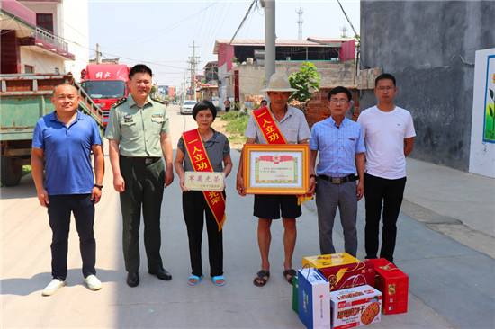 縣人武部、退役軍人事務(wù)局、雙擁辦等相關(guān)單位,通力協(xié)作,深入全縣465個(gè)行政村(居委會(huì)),為軍人軍烈屬發(fā)放光榮牌、義務(wù)兵家庭優(yōu)待金發(fā)放。截至目前,全縣23000多“軍人軍烈屬光榮牌”,已經(jīng)發(fā)放到戶到人。在“軍人軍烈屬光榮牌”發(fā)放中,奉母鎮(zhèn)奉三村現(xiàn)役軍人李中州榮立二等功,縣人武部、退役軍人事務(wù)局、雙擁辦組織到李中州家掛光榮牌并送喜報(bào),看望慰問李中州的父母。李中州的父親說:“中州在部隊(duì)已服役20多年,曾多次獲得三等功,這次又榮獲二等功,這是黨和軍隊(duì)培養(yǎng)的結(jié)果。今天縣領(lǐng)導(dǎo)來家慰問我們,感謝黨和政府對(duì)我家的關(guān)心照顧,我們將囑咐孩子努力工作,為軍隊(duì)事業(yè)再做貢獻(xiàn),為家鄉(xiāng)爭(zhēng)光添彩?!?/p>