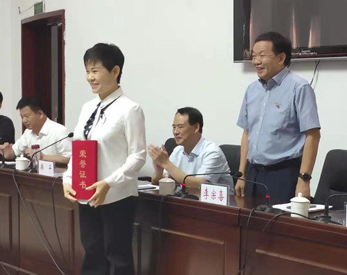 會上,與會領(lǐng)導(dǎo)向韓平女士頒發(fā)榮譽(yù)證書和榮譽(yù)獎牌。受助學(xué)生代表作了發(fā)言。