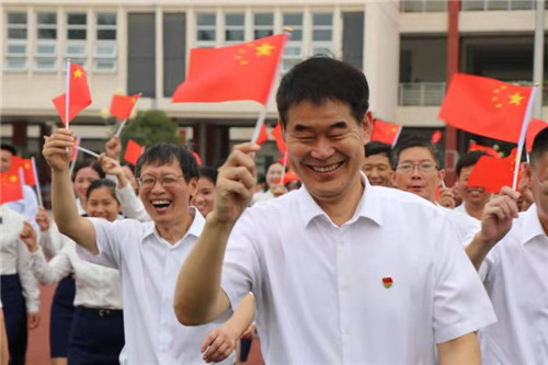 “我和我的祖國,一刻也不能分割。無論我走到哪里,都流出一首贊歌……”8月26日,在鄲城縣第二實驗小學,縣教體局黨組書記、局長劉現(xiàn)營帶領(lǐng)局黨組成員、機關(guān)各黨支部書記和二實小全體師生同唱《我和我的祖國》,用歌聲表達全縣教育人對祖國的無限熱愛。