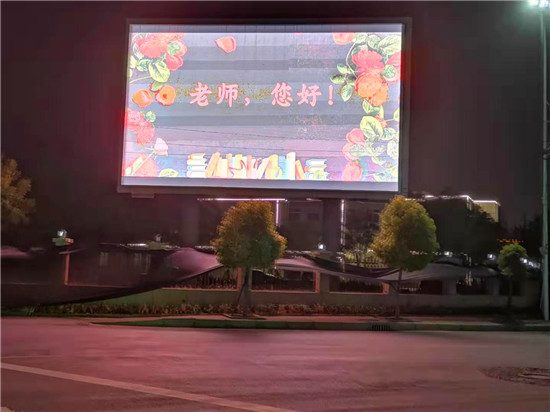 “老師,您好!”9 月10日晚上,鄲城縣人民公園大屏幕上,向全縣教師發(fā)出了溫暖、明亮的祝福。同一時刻,城區(qū)各主要街道公共LED大屏幕,以及縣一高、三實小等城區(qū)學校和石槽一中、秋渠一中等鄉(xiāng)村學校的顯示屏上,“老師,您好”四個大字在夜幕下顯得格外的醒目與亮眼。教師節(jié)當夜,老師儼然成為了“夜空中最閃亮的星”。