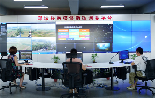 “要扎實(shí)抓好縣級(jí)融媒體中心建設(shè),更好地引導(dǎo)群眾、服務(wù)群眾?!弊鳛槭〖?jí)媒體融合示范縣,鄲城縣委、縣政府高度重視媒體融合發(fā)展,縣委書(shū)記羅文閣、縣長(zhǎng)李全林多次深入融媒體中心建設(shè)現(xiàn)場(chǎng)調(diào)研指導(dǎo)工作,并提出殷切期望。要求縣委宣傳部、融媒體中心組織專人負(fù)責(zé)、專業(yè)專攻、專題研究,走出去學(xué)習(xí)先進(jìn)、坐下來(lái)結(jié)合實(shí)際、多動(dòng)腦探索創(chuàng)新,“鄲城縣融媒體中心”于2018年10月建成,躋身全市融媒體建設(shè)第一方陣。2018年11月,河南省縣級(jí)新時(shí)代文明實(shí)踐中心、志愿服務(wù)中心、融媒體中心建設(shè)現(xiàn)場(chǎng)會(huì)在鄲城縣召開(kāi)。