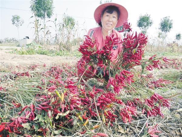 近日,扶溝縣汴崗鎮(zhèn)的辣椒種植戶們迎來豐收。汴崗鎮(zhèn)積極引導(dǎo)農(nóng)民調(diào)整種植結(jié)構(gòu),大力發(fā)展“訂單式”辣椒產(chǎn)業(yè),成為遠近聞名的辣椒種植專業(yè)鎮(zhèn),推動了脫貧攻堅工作和鄉(xiāng)村振興戰(zhàn)略實施。圖為該鎮(zhèn)于營行政村村民李素英向記者展示豐收的辣椒。記者 謝永靜 攝
