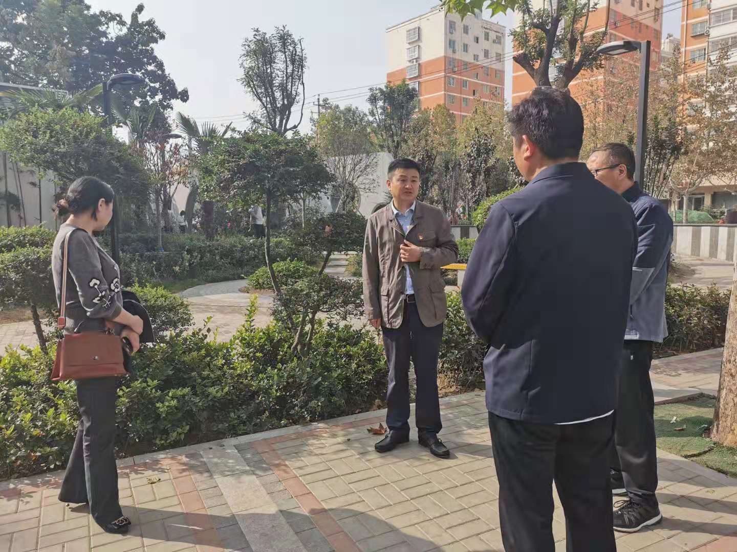 李湛還到關(guān)帝廟廣場(chǎng)查看樹(shù)穴美化工作,并提出指導(dǎo)意見(jiàn)。